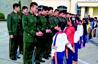 20日,鲸园街道办东山社区组织百余名学生来到驻威某部队,为即将退伍的老兵送别。学生们为武警送上了精美纪念品,并合影留念。随后,武警官兵带领学生们参观了军营和荣誉室。
