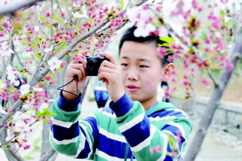 小记者朱恩粼站在樱花前拍照留念。(资料片)