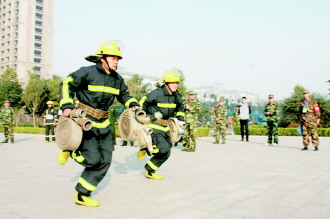 19日上午,第一届“枣矿杯”企业专职消防队比武竞赛举行,来自全市7支企业专职消防队的49名专职消防员参加。比赛结合企业专职消防队日常工作实际,设置了百米负重等项目。最终潍焦集团薛城专职消防队、鲁南化工专职消防队、新能源(滕州)凤凰消防队获得团体总分前三名。 本报通讯员 刘耀 本报记者 袁鹏 摄影报道