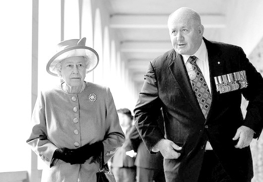 科斯格罗夫(右)和英国女王伊丽莎白二世。