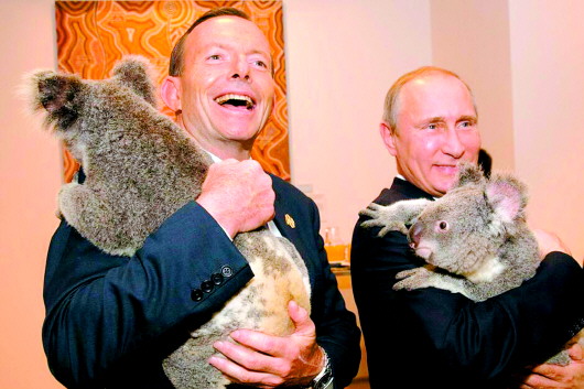 在刚刚闭幕的二十国集团(G20)领导人第九次峰会上,东道国澳大利亚出人意料地发起了“考拉外交”,“呆萌”的考拉萌翻了场内的领导人和场外的观众。当然,也有看客对澳大利亚总理阿博特和俄罗斯总统普京各抱一只考拉合影很是不满——不是说好见面要“单挑”吗,咋合伙卖起萌来了?