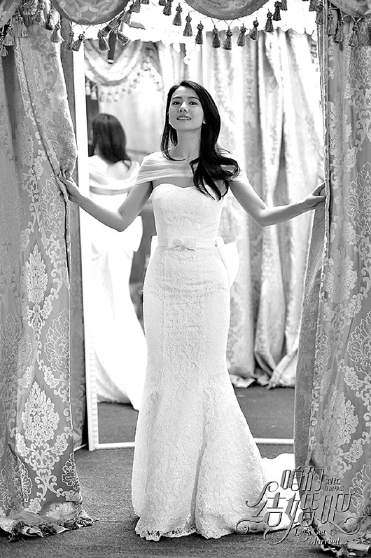 影版《咱们结婚吧》20日公布先导预告片,下周即将摆酒席的高圆圆在片中再度披上婚纱,深陷幸福浪漫中。据了解,剧组共使用了各种样式的婚纱近400件,使整部影片笼罩在浪漫唯美的氛围中,极具梦幻色彩。