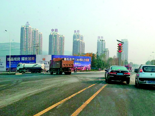 部分渣土车不仅夜间猖狂,白天也存在超速等行为。21日上午10时许,记者来到旅游路一处十字路口附近,发现一辆自西向东行驶的渣土车在连续高速超越两辆轿车之后,轧过黄色的双实线左转弯疾驰而去。