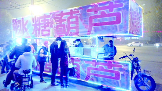 这么时尚的糖葫芦车确实吸引不少人上前观看。正在烧制糖浆的老板对记者说,我开到哪卖到哪,价格跟一般的冰糖葫芦一样,山药豆一块五一串,这一车糖葫芦几乎都卖完了。不仅路人看呆了,连其他商贩也忍不住行注目礼,望着围在车前的七八个顾客羡慕不已。