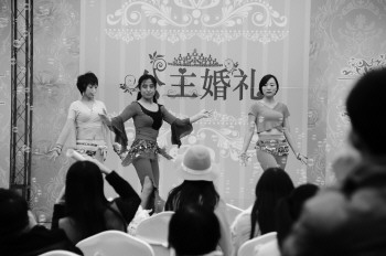 表演者冒着小雨为大家献上精彩的肚皮舞表演。 本报记者 马志勇 摄