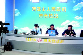 菏泽市工商局相关负责人做客市长热线。 本报记者 董梦婕 摄