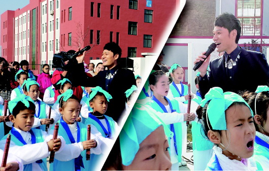 皓天和学生一起演唱“中国少儿歌曲创作推广计划”推荐曲目《孔子说》。