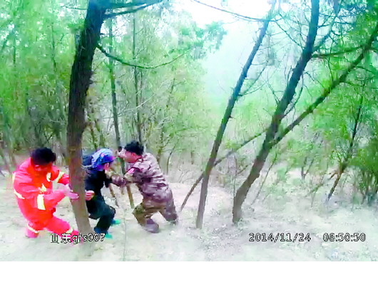 “咱们兵分两路。”为保险起见,民警和森林消防只得借助陡坡上的树木慢慢顺坡而下,来到王萍所在巨石上方,另一路则绕至王萍的后方。一路从后方托着王萍,另一路则从上方将其拽离巨石处。