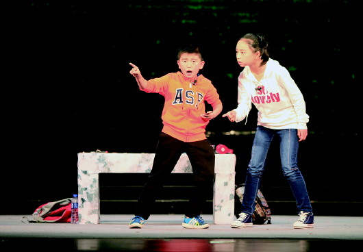 小演员在台上表演。
