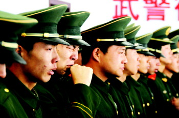 24日,武警德州支队服役期满的部分退伍老兵,卸下军衔。即将分别,这群铮铮男儿禁不住流下热泪。