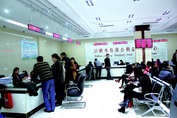 24日,日照市住房公积金管理中心内,众多市民办理贷款业务。