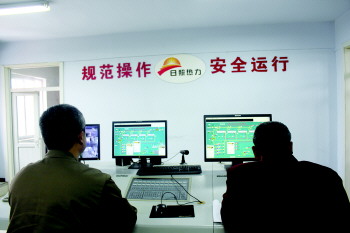 北京路换热站内工作人员密切关注供热管网动态。 本报记者 李玉涛 摄