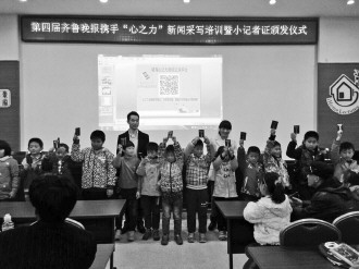 本报11月24日讯(记者 刘洁 实习生 康学敏) 22日,本报第四场小记者培训走进威海市妇女儿童活动中心,为2015届见习小记者培训文字采写、图片拍摄等新闻知识,并颁发“小记者证”。116名参与培训的见习小记者成功转正,2015年持证参与小记者活动。心之力全脑教育专家卢开元为家长介绍全脑教育,小记者们免费获得感知作文培训。