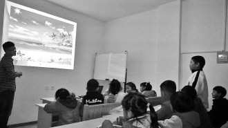 ▼老师为小记者们进行感知作文培训。