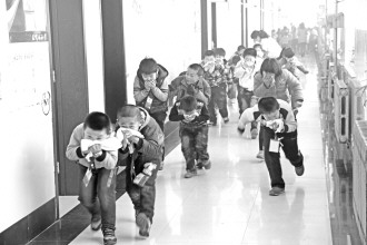 24日,后峰西小学举行消防疏散演练。警报声响后,滚滚浓烟弥漫道口,逼真的场面让孩子身临“险境”,增强紧急情况下的应变和自我逃生保护能力。