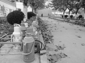 在枣庄学院内的锅炉房附近,一排“占座”的水壶,成为校园一道别具风格的风景。记者了解到,学校专门设计安装了铁栏,使每个水壶都能找到自己的“一席之地”,为了防盗,学生们纷纷给自己的水壶上了锁。 本报见习记者 孙越 摄影报道