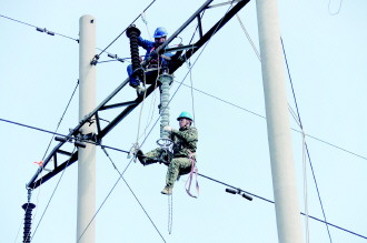 24日,枣庄供电公司滕州客户服务分中心(运维站)组织30人的检修施工队伍,更换了220千伏杜庙变电站110千伏杜南线杆塔拉线绝缘子。近期,该公司把电网防冰冻、防污闪等作为重要工作来抓,加快电网运维检修,提高线路设备安全运行水平,确保电网冬季安全可靠供电。 本报记者 张冬梅 本报通讯员 班开超 王葳 摄影报道