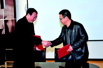 本报11月25日讯(记者 李孟霏) 25日上午,山东大学(威海)商学院与齐鲁晚报威海记者站签署战略合作协议,通过这种校企合作的新模式,该校商学院学生将获得就业实习机会,同时将作为电商孵化基地为威海记者站全媒体中心提供人才和技术支持。当天上午,山东大学(威海)商学院党总支书记袁相万出席威海记者站站长王永田出席活动,并为基地揭牌。