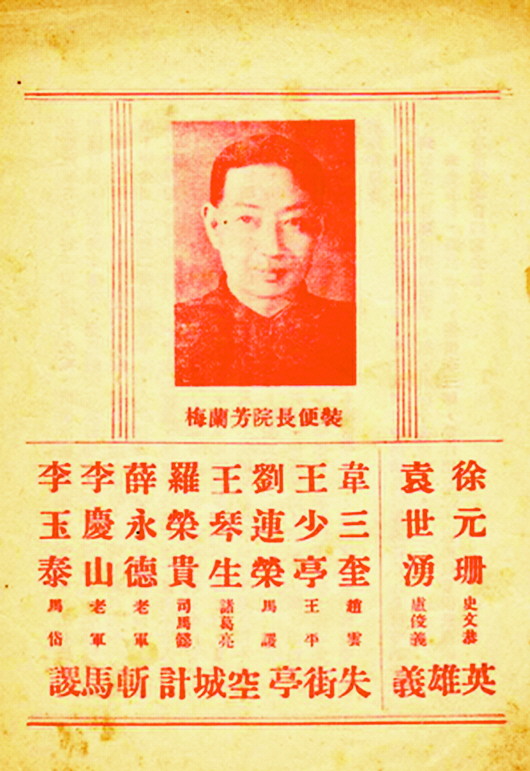 首场演出开始于这一年的8月19日,连演月余,场场爆满。强大的演出阵容令人刮目,除领衔主演的梅大师以外,还有众多享誉中外的表演艺术家,海报上按笔画排序列出的演员有:王少亭、王琴生、李玉太、李春林、李庆山、袁世涌、姜妙香、徐元珊、韦三奎、耿世华、贾世珍、张蝶芬、刘连荣、薛永德、萧长华、罗荣贵。演出剧目大都是梅剧团几十年反复加工的优秀传统剧目,如《贵妃醉酒》、《奇双会》、《宇宙锋》、《霸王别姬》、《凤还巢》等;还有一批脍炙人口的折子戏,如《英雄义》、《失街亭》、《蜈蚣岭》、《连营寨》等等;好几出改编的历史剧,如《抗金兵》、《梁红玉》等,更给人以耳目一新的感觉。