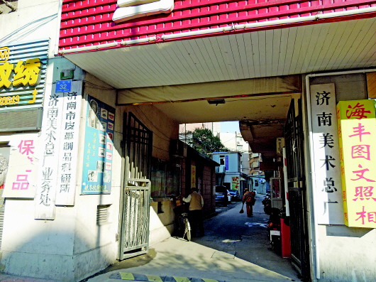 济南美术总厂隐藏在朝山街众多装修精美的店铺中,显得有些落寞(资料片)。
