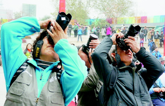 在摄影爱好者中,还有一群年轻的面孔。齐鲁工业大学近十名大四学生一大早就从长清大学城赶来了。一名学生说:“我们都是摄影专业的学生,听说这个活动特别兴奋。”不少学生激动得早上5点多就起床了。
