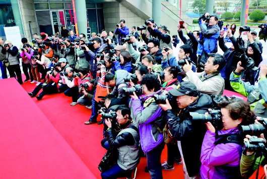 27日上午9点多,在距活动正式开幕还有多半小时,过半数的摄影爱好者就已经签到入场。他们身着统一的摄影专用马甲,拿着各种专业的“长枪短炮”,迫不及待地选取各种角度对第一高进行拍摄。