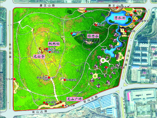龙盘山公园位于唐王山路以南、双山北路以北、双山西路以西、世纪西路以东,地处我市城市核心区,东西长800米,南北长700米,面积730亩。