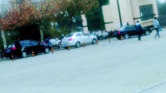 25日下午,记者来到齐鲁师范学院北门,看到十几辆私家车横七竖八地停靠在该校门口,不少中年男女在学校门口招呼出行学生乘坐自己的车。下午六点左右正值学生出入高峰,私家车在学校门口造成交通拥挤。在学校上班的职工多数骑电动车上下班,学校附近的机动车副道也被占用,存在很大的安全隐患。