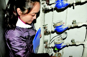 工作人员正在核对水表信息。本报记者 公素云 摄