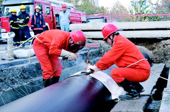 据该单位安全科科长曲江介绍,此次演练地点位于城市暗渠交汇处,暗渠最终流向微山湖,且周围分布着十多家商铺和一个居民区,一旦发生原油泄露,如不及时处置,后果十分严重,属于高后果区。