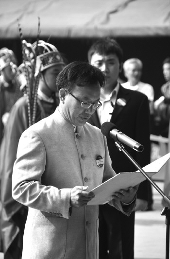 百姓祭孔现场,一位中学教师宣读祭文。 本报记者 李岩松 摄