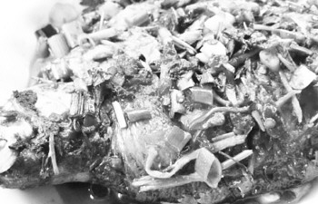 3.等鱼的两面都煎好,可以将切好的生姜丝放入鱼的一边。