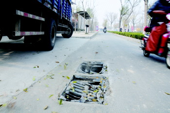 11月26日,青年路上,近期安装的排水口井箅子,不少已经被碾轧毁坏。 本报记者 马志勇 摄