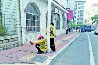 描述:两个小伙伴靠着一根电线杆,有坐有蹲,还挺专注。