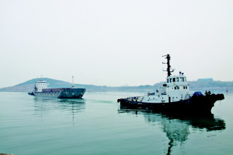 ▲拖轮拖带“嘉华6”轮到龙眼港。 通讯员 王红全 摄