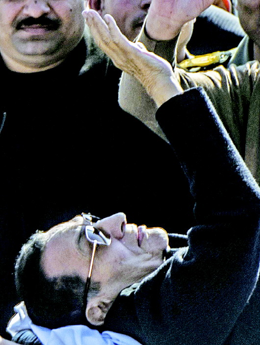 29日,在埃及开罗,埃及前总统穆巴拉克在出席庭审后乘直升机回到医院。 新华/法新
