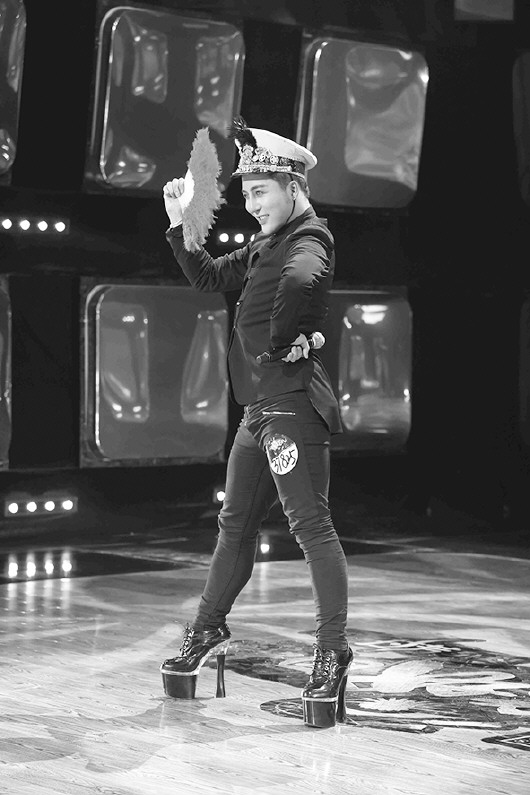 本报讯(记者 邱祎) 在近日《中国好男儿》的节目中,最令观众过目不忘的,恐怕就数挺进北部十二强的妩媚“妖男”徐飞了。在短短的一分多钟镜头里,虽然只是匆匆一支扇子舞,徐飞夸张的造型以及独特的表演却着实令大家惊讶了一番。