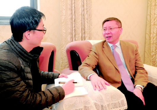 张维为(右)接受本报记者专访。 本报记者 左庆 摄