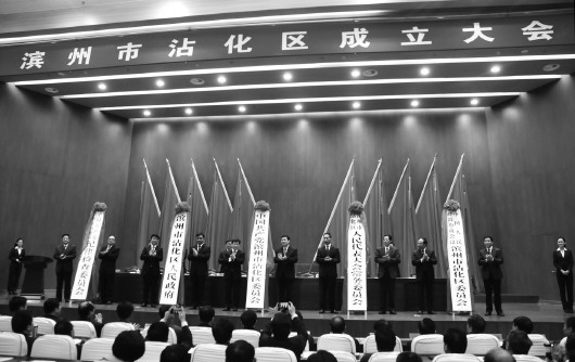 会议宣读了《山东省人民政府关于调整滨州市部分行政区划的通知》、《中共滨州市委、滨州市人民政府关于撤销沾化县设立沾化区的实施意见》,市委、市人大、市政府、市政协、市纪委主要领导分别与沾化区相关负责同志共同为沾化区几大班子揭牌。