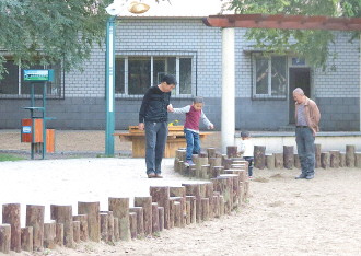 时间:2014年9月21日自述:老人牵着孩子的手,在梅花桩上行走。 点评:走自己的路,让自己乐去吧。