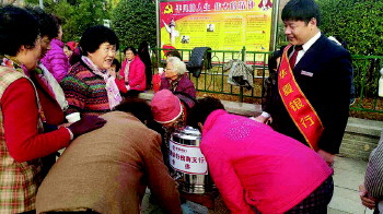 11月22日、23日的济南寒气袭人,但仍有不少热爱运动的晨练者一大早便聚集到槐荫广场锻炼身体,享受体育运动、广场舞蹈带来的愉悦。运动过后,晨练者们由于出汗遇寒极有可能感冒,尤其是一些上了年纪的老人,更是深受其扰。地处广场一角的华夏银行槐荫支行,专门为数以百计的晨练者熬制了老姜红糖水,寓健康、温暖于服务之中,晨练者们亲切地称之为华夏银行的“暖心工程”。