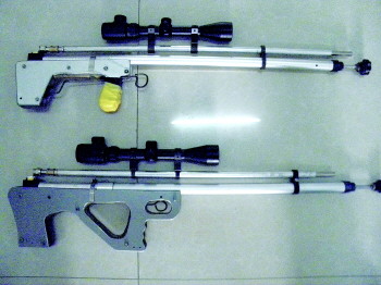 11月5日下午,高某在家中被警方带走拘查,经过突审,高某承认了制造枪支的事实,并供述出造枪同伙刘某,很快刘某也被办案民警控制。嫌疑人高某、刘某交代,今年年初,他们从网上下载图纸,获取了制造枪支的技术,并在网上购得造枪的部分零件,随后在高某的铝合金门市铺中加工成了两支气枪。