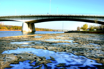 1日,全市最低气温达到-5.8℃,锦绣川景区内的浅水结冰,也正因冷空气来临天空湛蓝。 本报记者 马志勇 摄