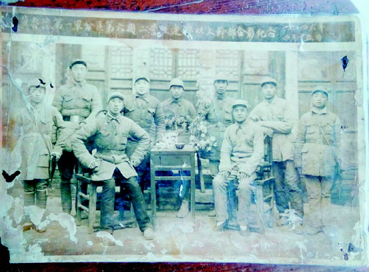 冀鲁豫边区第一军分区第六团二营连以上干部合影,于军在桌子右侧落座。