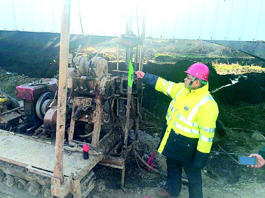 2日上午,记者来到化纤厂路与花园路路口附近大辛河桥路北侧地质勘察项目现场,经过紧急处理,钻机漏气问题已经得到控制,现场无任何安全设备损坏,无人员伤亡,施工现场恢复正常,有关工程地质的勘察工作可以继续进行。