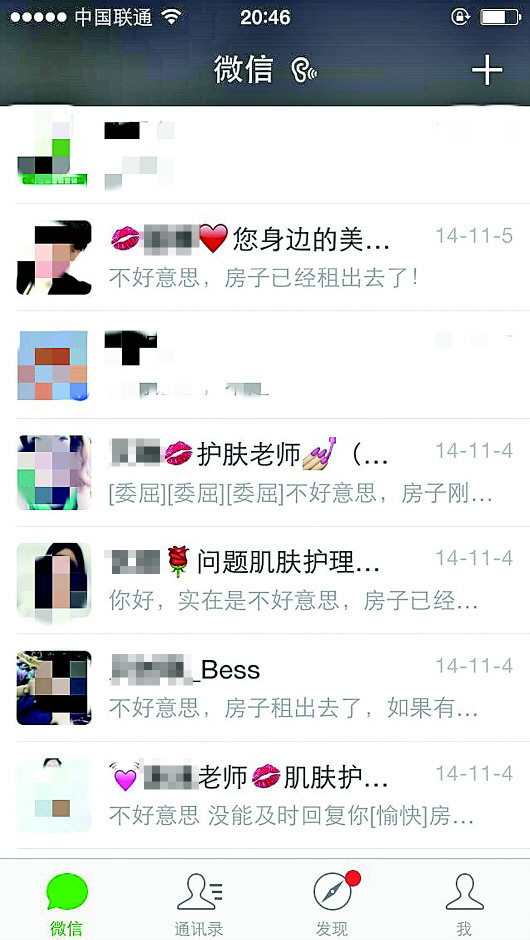 一些房租价格特别便宜、只针对女性的广告,频繁出现在某网站的租房网页上。这些只留下微信号的房东在加了咨询者好友后,微信名和状态几天后会朝着一个方向改变:护肤美容老师。以便宜房子吸引女性客户,然后推送“精准”营销内容,这些通过微信做生意的微店主,也是蛮拼的。
