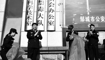 在揭牌仪式上,省公安厅禁毒总队队长邵浩浩,济宁市政府党组成员、市公安局局长周凤文共同为“邹城市公安局禁毒大队”揭牌。邹城市公安局有关负责人介绍,近年来,随着经济的发展,毒品问题越来越突出,成为影响社会治安稳定的一个重要因素。截至目前,邹城市共破获各类涉毒案件130余起,批准逮捕犯罪嫌疑人37人,缴获冰毒2200余克,开展各类禁毒宣传活动18场次,受教育群众达2万余人次,禁毒工作取得显著成效。