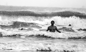 12月2日,第一海水浴场雪花片片。芝罘区冬泳协会的冬泳爱好者们,在雪中畅游,快意非常。“降雪的天气很通透,其实今天(天气)比昨天好很多。”上岸之后,他们十分精神地与岸边游客打招呼,成为雪中独特的城市符号。