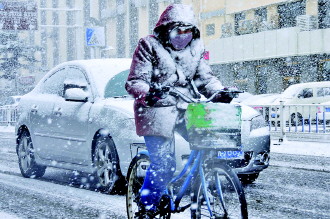 2日12时许,市区突降鹅毛大雪,短短半小时,行人身上积满雪花,汽车的车牌也被雪花覆盖,整个城市披上白色的外衣。