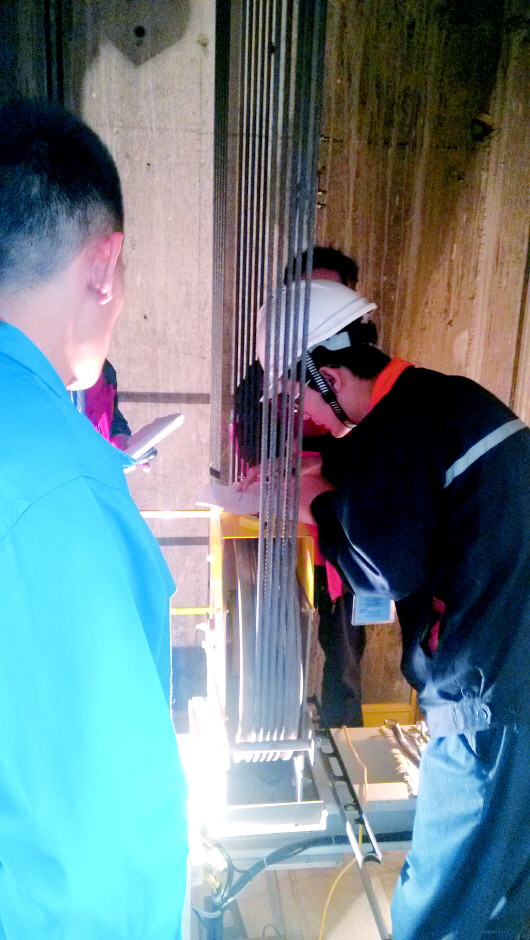 ▲质量技术专家正在检查电梯导轨间距,这是影响电梯安全的关键因素。据专家介绍,由于公众对电梯使用知识了解不多,生活中很多使用不当的行为也导致电梯出现故障。如即开即停、冲撞梯门、多次重复按压按键,等待时间过长,超载等。
